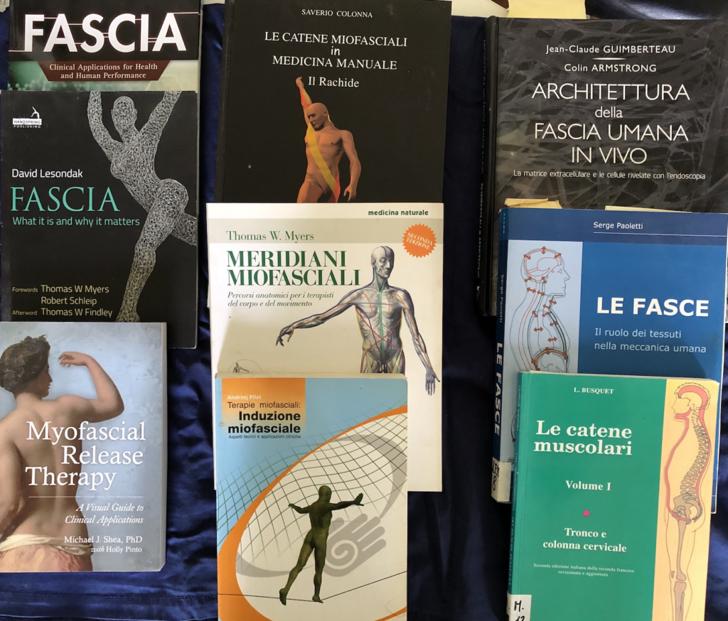 Il sistema fasciale è costituito dal continuum tridimensionale di tessuti connettivi fibrosi morbidi, contenenti collagene, sciolti e densi che permeano il corpo. Incorpora elementi come tessuto adiposo, avventizie e guaine neurovascolari, aponeurosi, fasce profonde e superficiali, epinevrio, capsule articolari, legamenti, membrane, meningi, espansioni miofasciali, periostii, retinacoli, setti, tendini, fasce viscerali e tutte le strutture intramuscolari e tessuti connettivi intermuscolari compresi endo-/peri-/epimisio. Il sistema fasciale circonda, si intreccia e compenetra tutti gli organi, i muscoli, le ossa e le fibre nervose, dotando il corpo di una struttura funzionale e fornendo un ambiente che consente a tutti i sistemi corporei di operare in modo integrato. Vedi “Aggiornamento sulla nomenclatura fasciale”. Tratto da: ttps://fasciaresearchsociety.org/about_fascia.php