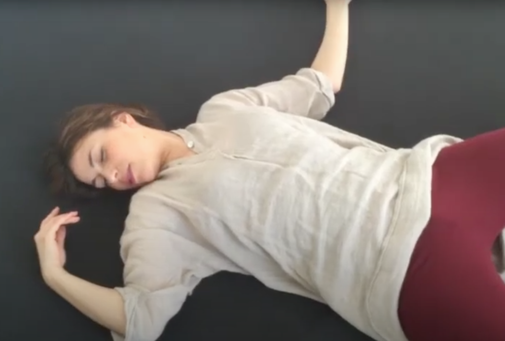 Rivedendo i video mi sono accorta di quanto fosse difficile durante il lavoro (e ora, a distanza di giorni, ancor di più) verbalizzare le percezioni fisiche di ciò che avveniva; tuttavia se c’è un termine che può avvicinarsi al vissuto di cui parlo è dinamismo interno, accompagnato da un’emozione navigante sulla scia dello stupore. Quest’ultimo ad esempio è emerso percependo ed osservando il tremore presente nelle braccia quando regredendo all’età di pochi anni, a pancia in giù, tentavo di sollevarmi premendo il suolo con le mani. Ciò che si sviluppa spontaneamente nella crescita e rapporto al mondo del bambino diventa poi inusuale o automatico per l’adulto.