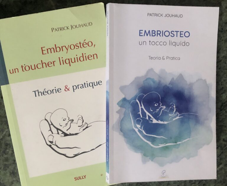 “Nato dall’incrocio tra ricerca in embriologia dinamica e osteopatia, l’Embriosteo offre una comprensione e un’applicazione completamente nuove dell’approccio osteopatico, che si basano sulla percezione dell’attività metabolica originaria: la “respirazione protoplasmica”. Questa manifestazione del vivente, che si esprime in un movimento che è allo stesso tempo mobile e immobile, inizia al momento della fecondazione e prosegue fino alla morte. Per percepirlo con le proprie mani e poterlo utilizzare nella diagnosi e nel trattamento, il terapeuta deve acquisire un tocco specifico, che viene detto “liquido”. In altri termini, deve potersi connettere con l’acqua del corpo, il maggior elemento costitutivo del vivente, vettore di informazioni fondamentali, in particolare di memorie legate agli stati di salute.