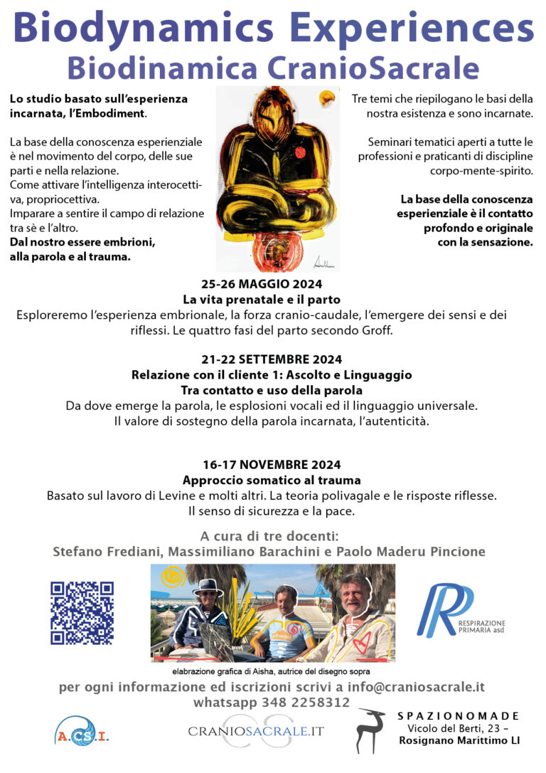 Abbiamo chiamato Biodynamic Experiences, BE il primo ciclo di incontri del 2023, vedi https://www.craniosacrale.it/blog/biodynamc-experiences/.