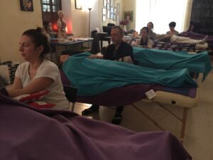 R: Mi è venuta in mente un’esperienza quando sentendo una densità in una certa parte del corpo di una persona mi sono collegata coi fluidi, per esempio… e anche con lo spazio senza avere l’intenzione… e l’ho fatto su di me. Diciamo che avere quest’esperienza di anatomia esperienziale allarga tantissimo il campo…